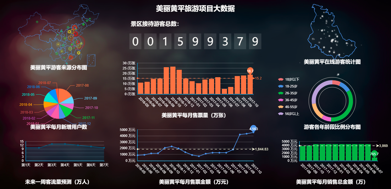 路通視信始終立足于景區(qū)的整體設計與規(guī)劃,追求“智慧化”,不盲目推崇科技感,堅持以項目的落地可行為建設目標。曾與貴州省黃平縣展開合作,立足當?shù)貙嵺`,為其量身打造大數(shù)據(jù)平臺,涵蓋行、食、住、游、娛、購六大方面,滿足了相關政府部門推動旅游產業(yè)和旅游信息化的行政辦公需求。
